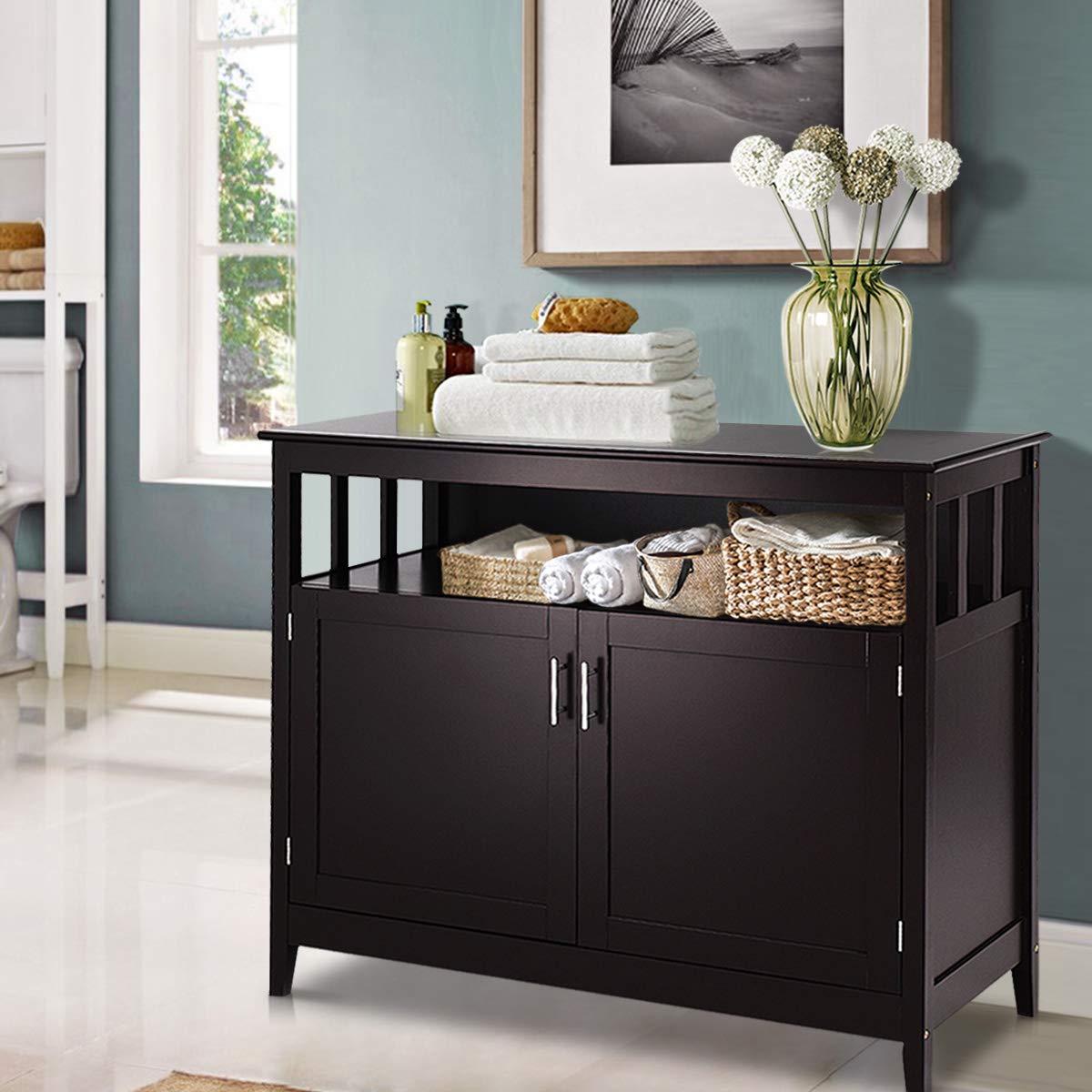 This modern kitchen buffet server cabinet from homcom fits nicely with any decor and can be used homcom 71 modern freestanding kitchen buffet hutch with server and storage. Find all the extra storage you need with a sturdy and stylish kitchen buffet. Costway storage cabinet sideboard buffet cupboard glass sliding door pantry kitchen new white. Browse country cabinets, modern buffets and rustic hutches—and decorate now, pay later!
